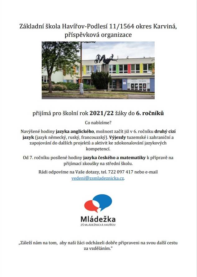 Přijímáme nové žáky do 6. tříd